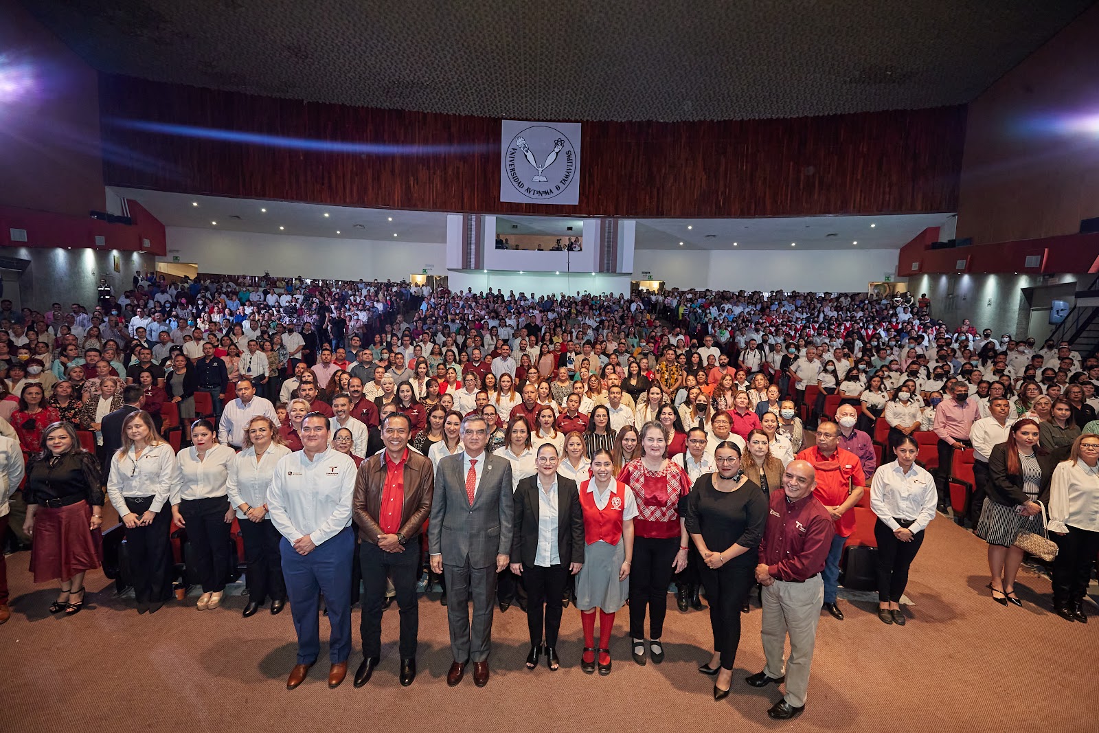 En un evento realizado en el Teatro Juárez, ante cientos de profesoras y profesores, a quienes destacó como los invitados principales al igual que a estudiantes normalistas de la carrera del magisterio y en donde estuvo presente Marx Arriaga Navarro, director general de Materiales Educativos de la Secretaría de Educación Pública y Lucía Aimé Castillo Pastor secretaria de Educación en Tamaulipas, enfatizó que es una gran oportunidad de repensar la educación en Tamaulipas, en el contexto del inicio de la administración estatal y en este ciclo escolar actual, que tiene un papel fundamental en la actualización de las y los docentes.